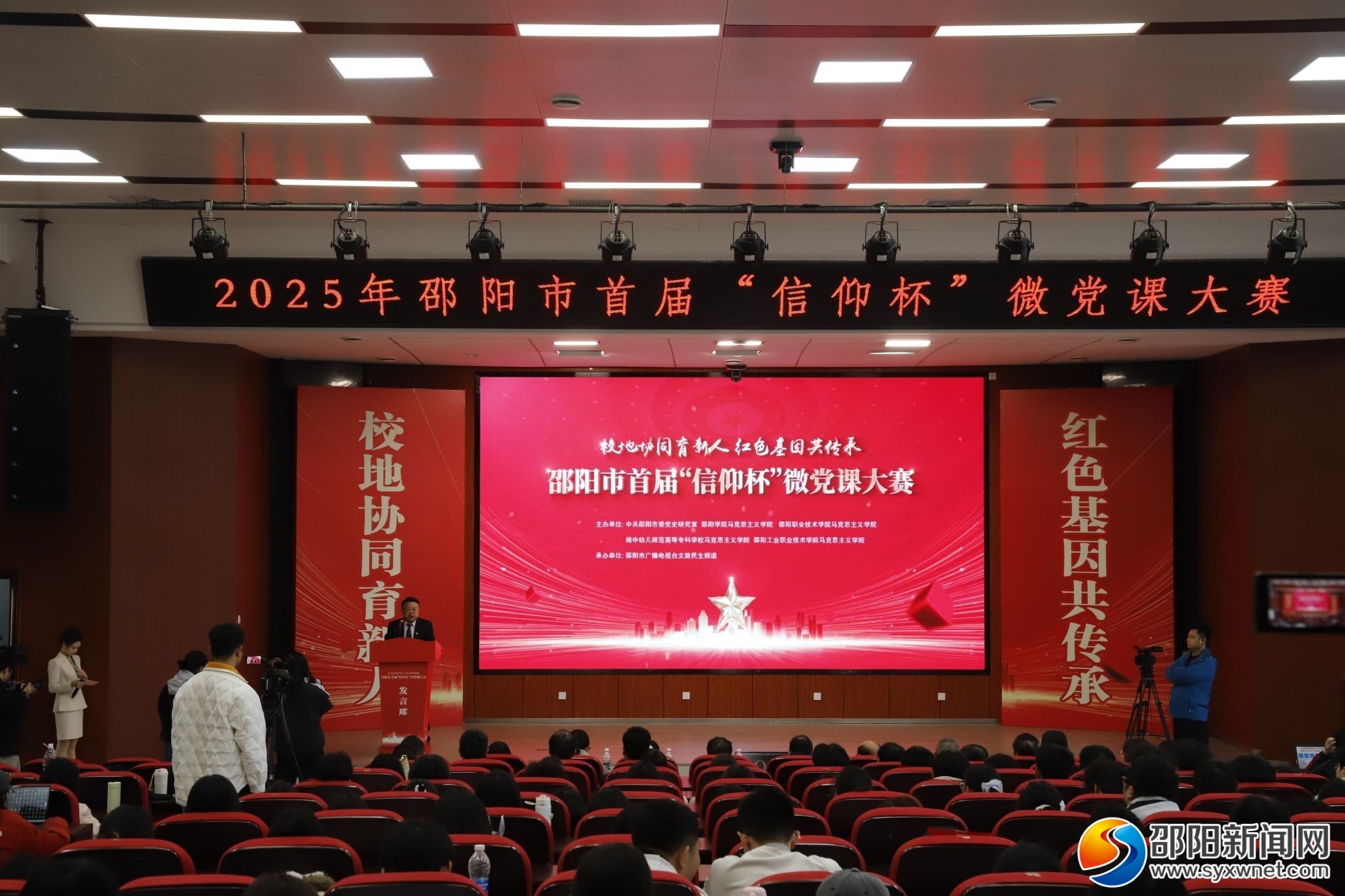 邵阳新闻网11月19日讯(记者 范谢 通讯员 易敏)11月19日,由中共邵阳市委党史研究室牵头,联合邵阳学院、邵阳职业技术学院、湘中幼儿师范高等专科学校、邵阳工业职业技术学院四所高校马克思主义学院共同主办的邵阳市首届“信仰杯”微党课大赛决赛在邵阳工业职业技术学院举行。来自四所高校的4名教师选手和4名学生选手同台竞技,以“十分钟微党课”讲述红色故事、传递信仰力量,呈现了一场思想与情怀交融的思政盛宴,展现了新时代思政教育的创新活力。