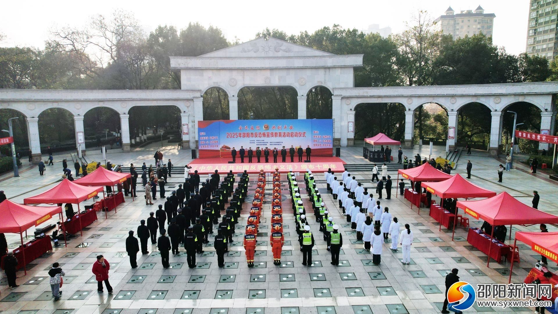 邵阳新闻网12月27日讯(记者 晏彬彬 范谢 )12月27日,“全民反恐共创平安”《中华人民共和国反恐怖主义法》颁布十周年暨邵阳市反恐怖宣传教育活动启动仪式在邵阳市区城南公园举行。副市长、市公安局局长吴冰出席活动并宣布活动启动。