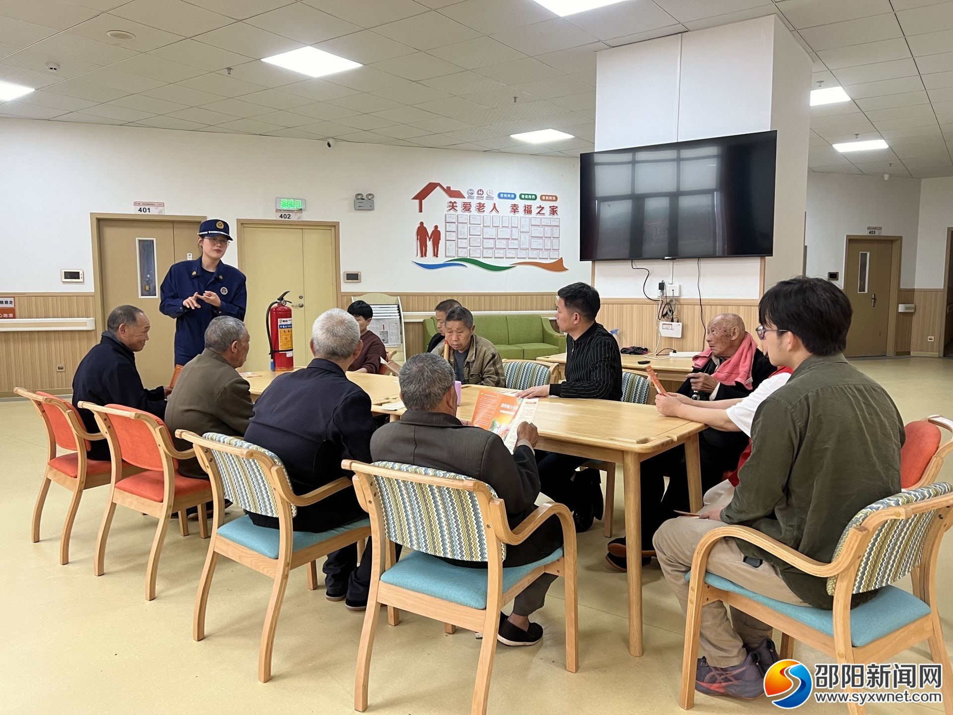 邵阳新闻网4月14日讯(通讯员 邓金华)为切实加强养老服务机构消防安全防范工作,提升养老服务机构老人与员工的消防安全意识和应急逃生能力。4月11日,北塔大队走进辖区养老院,开展了一场针对性强、实用性高的消防宣传培训活动,为老人们的生活筑起一道坚实的“防火墙”。