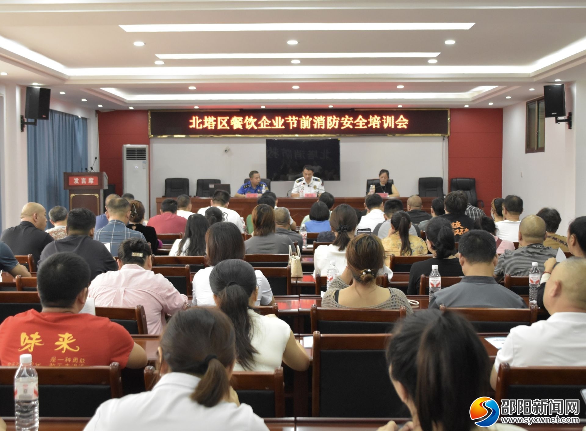 邵阳新闻网9月30日讯(通讯员 邓金华)9月29日上午,北塔区消防救援大队、区城管局、区市场监督管理局联合组织召开全区餐饮企业节前消防安全培训会,80余家餐饮企业负责人参会。
