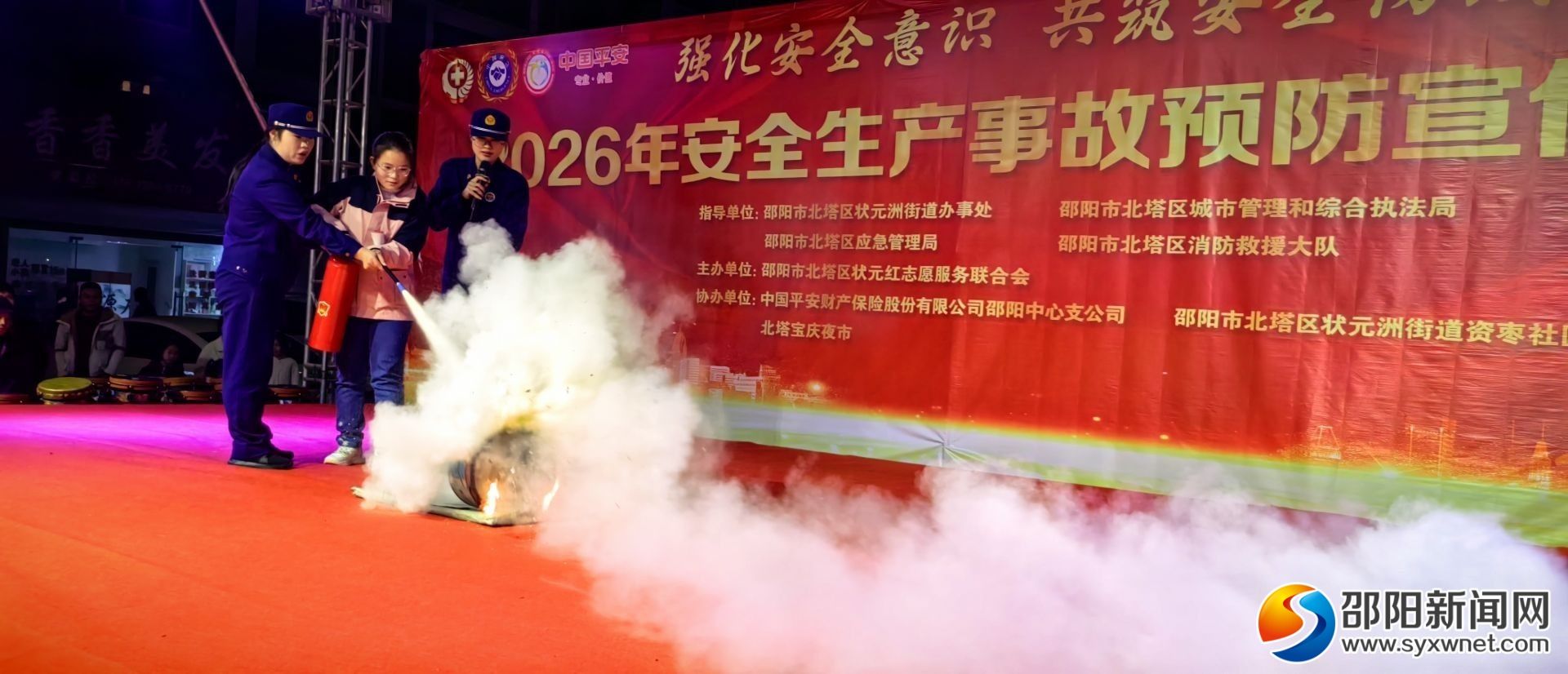 邵阳新闻网1月19日讯(通讯员 邓金华)1月17日,北塔区消防救援大队联合区应急管理局、区城管局、状元洲街道、状元红志愿服务联合会等相关部门在状元洲街道宝庆夜市开展2026年安全生产事故预防宣传集中活动。