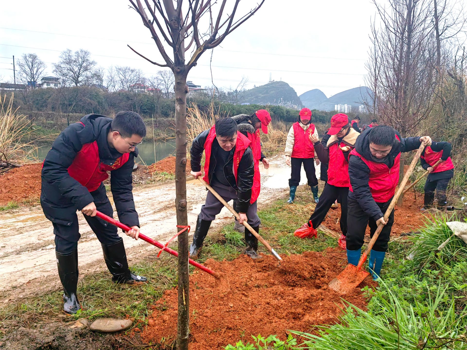 扶苗填土、培土围堰、提水浇灌……大家干劲十足,合作无间,各个环节衔接有序。经过一上午的辛勤劳作,圆满完成了植树任务。 巫水河畔,一排排新种的树苗迎风挺立,传递着春天的生机与活力。