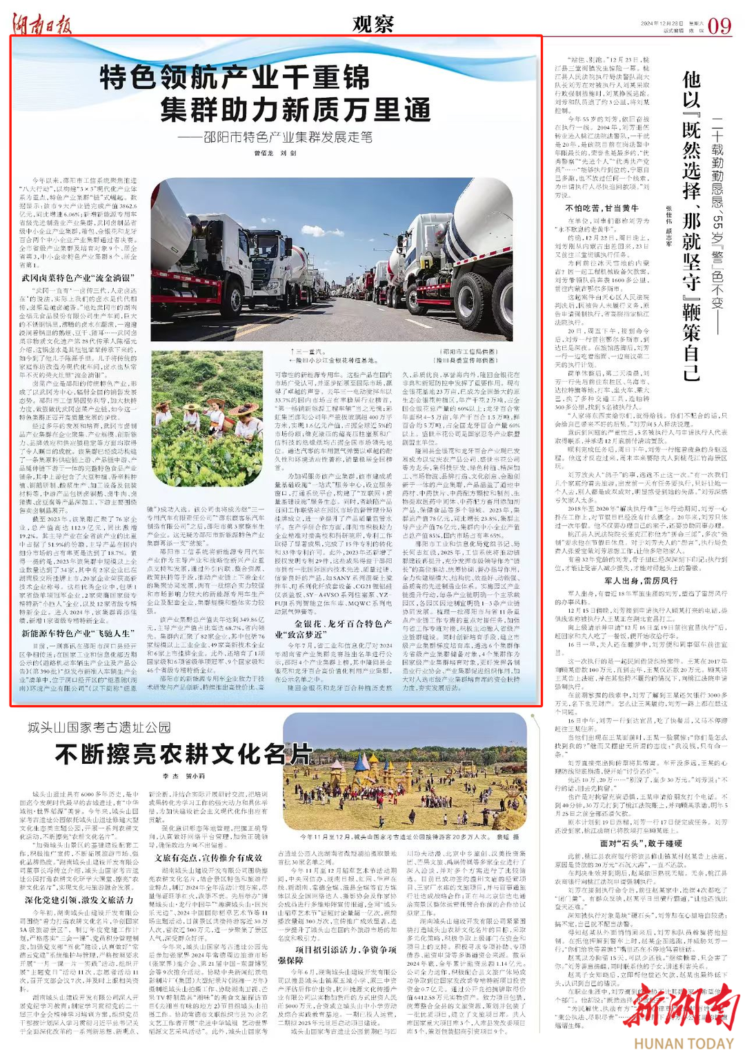 今年以来,邵阳市工信系统聚焦推进“八大行动”,以构建“3×3”现代化产业体系为重点,特色产业集群“链”式崛起。数据显示:该市9大产业链完成产值3862.6亿元,同比增速6.06%;新增新能源专用车省级先进制造业产业集群,武冈卤制品省级中小企业产业集群,箱包、金银花和龙牙百合两个中小企业产业集群通过省决赛。全市省级产业集群及培育对象9个、居全省第3,中小企业特色产业集群8个、居全省第1。