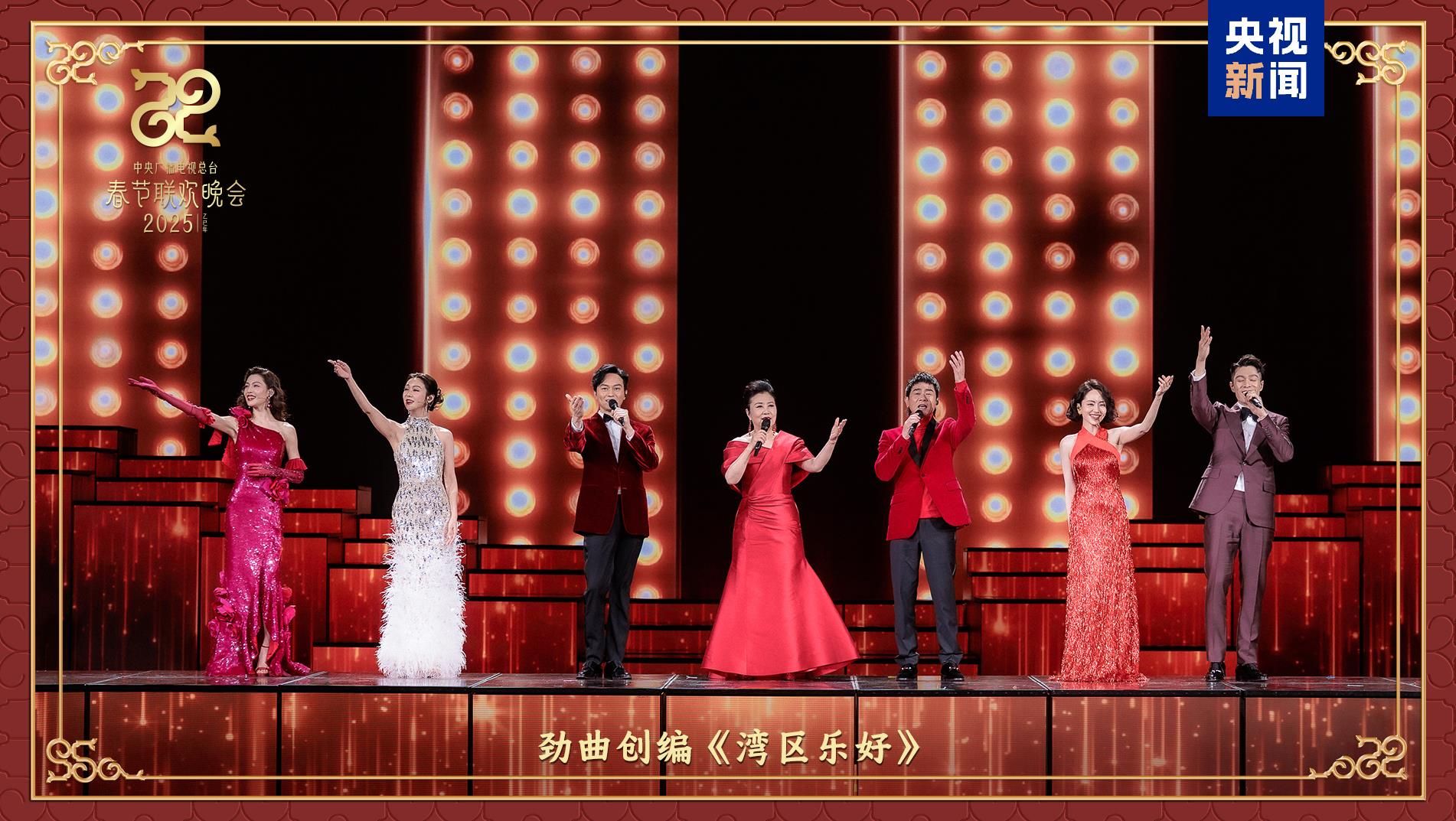 同心同向,血脉相连。汪明荃、陈小春、张智霖、薛凯琪、周柏豪、刘惜君、钟楚曦等来自粤港澳大湾区的歌手演员们,以一首劲曲创编《湾区乐好》带来《海阔天空》《万水千山总是情》等耳熟能详的经典粤语金曲。杨宗纬、容祖儿、罗嘉豪、郁可唯等海峡两岸及香港、澳门的歌手共同演绎歌曲《如意》,唱出相扶相依、彼此祝福的深切情意。“如意球”随着歌声升空飞往万户千家,也将“所愿皆所成”的祝福送给全球中华儿女。