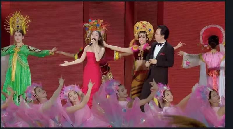 王妮娜在中华全国总工会举办的大型文艺活动中演唱《主心骨》。