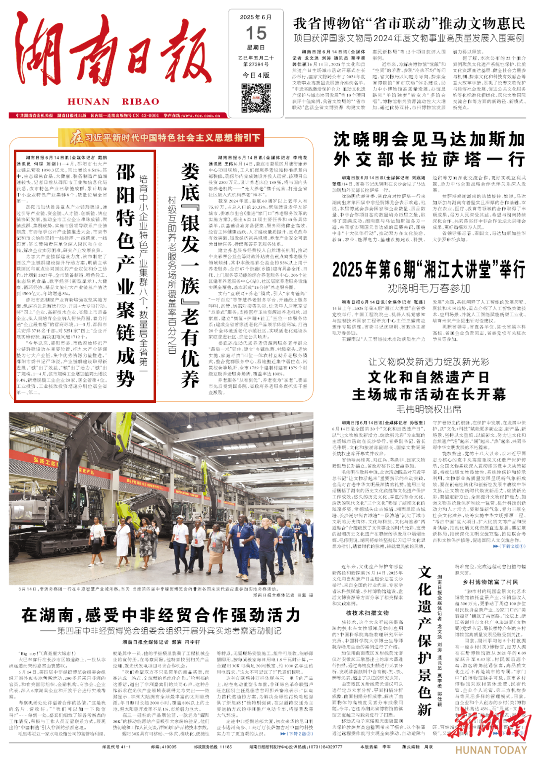 “今年以来,邵阳市委、市政府始终把产业链群建设放在重要位置,把九大产业链调整为七大产业链,集中优势资源力量推进。”邵阳市委书记严华说,产业链群建设取得新进展,“链”出了效益、“链”出了活力、“链”出了规模。1—4月,该市规模工业增加值同比增长9.4%,新增规模工业企业20家,居全省第4位。工业投资、工业技改投资增速分别位居全省第一、第二。