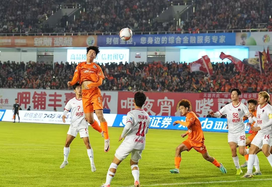 秋雨潇潇的常德体育中心,2025年10月18日。比赛进入读秒时刻,邵阳队仍以1:2落后。此时,门将温存恺毅然冲入对方禁区,在混战中一记抢射,皮球应声入网!2:2!这场惊天绝平,让随队远征的280余名邵阳球迷陷入狂欢。
