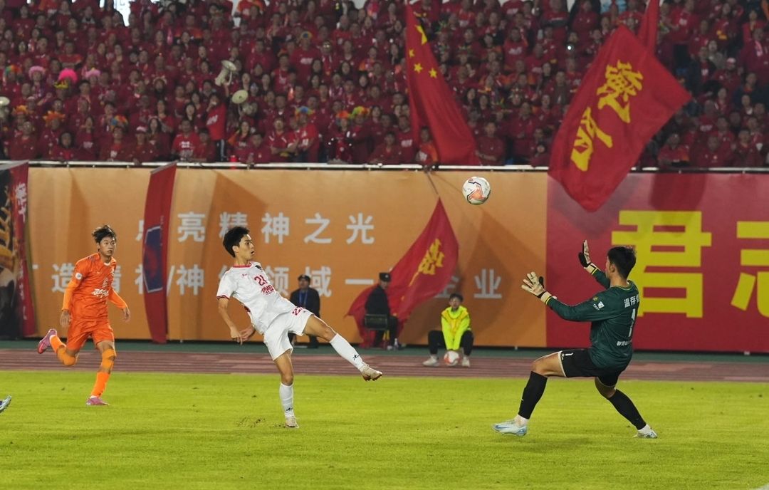10月26日的湘超赛场,邵阳队面临更加严峻的考验。在少一人作战的67分钟里,门将温存恺用血肉之躯筑起一道不可逾越的铜墙铁壁。惊险扑救后重重倒地的他,在队友搀扶下仍咬牙坚持,以一次次飞身扑救化解危机。