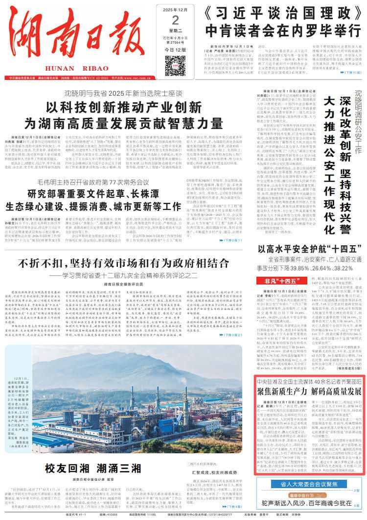 湖南日报12月1日讯(全媒体记者 戴鹏)今天,“新征程,新样范——中国式现代化在湖南的实践”大型主题宣传活动,在邵阳经开区启幕。来自新华社、人民网等中央驻湘及全国主流媒体的40余名记者组成采访团,将在3天的行程中,深入邵阳一线,开展行进式、蹲点式深度采访。