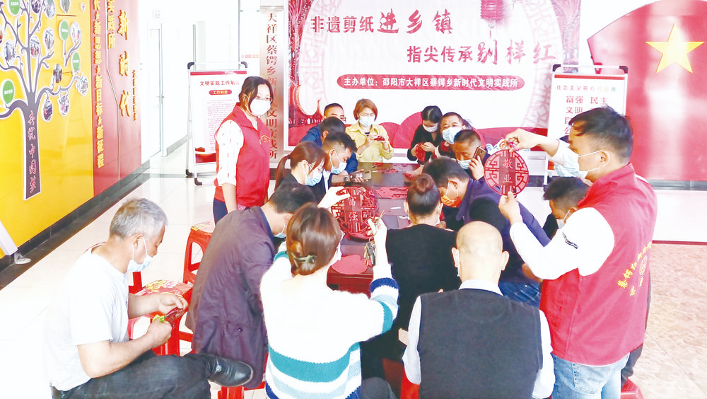 大祥区蔡锷乡新时代文明实践所开展“非遗剪纸进乡镇,指尖传承别样红”活动