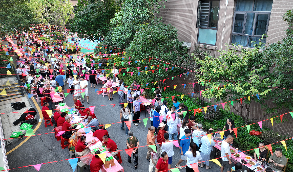 当天,居民热情高涨,纷纷端出自己的拿手好菜,摆满了长长的餐桌。邻里之间,一边品尝着各式美味,一边闲话家常,欢声笑语不断,场面温馨又融洽。