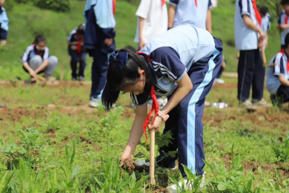 活动期间,孩子们在老师的带领下,小心翼翼地铲除植物周边的杂草,并对杂草进行分类清理。之后,他们手拿锄头、水桶等农具,体验种植辣椒、土豆等农事活动。孩子们干劲十足,在锻炼动手实践能力的同时增强了观察力与判断力。