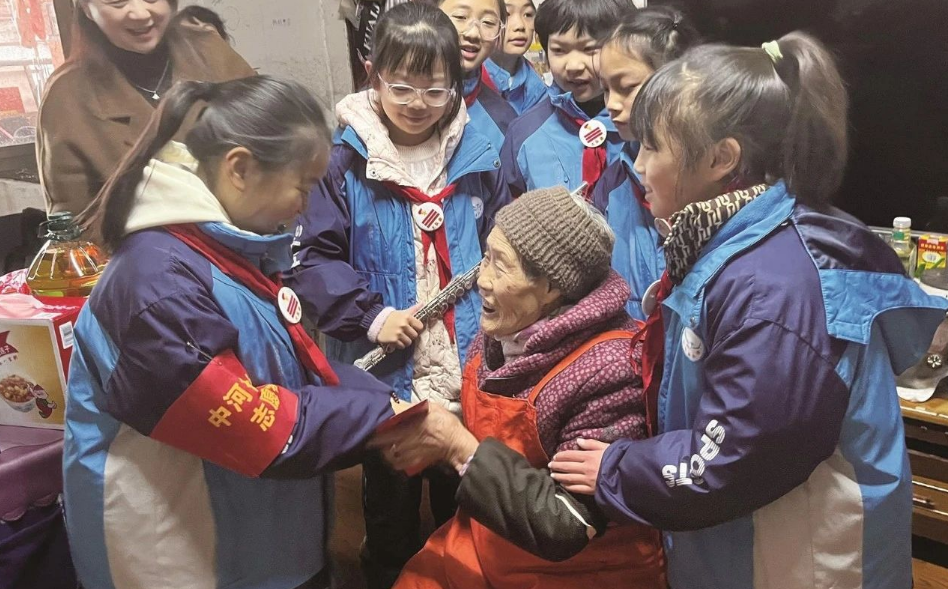 双清区中河街小学组织学生走访慰问独居老人。