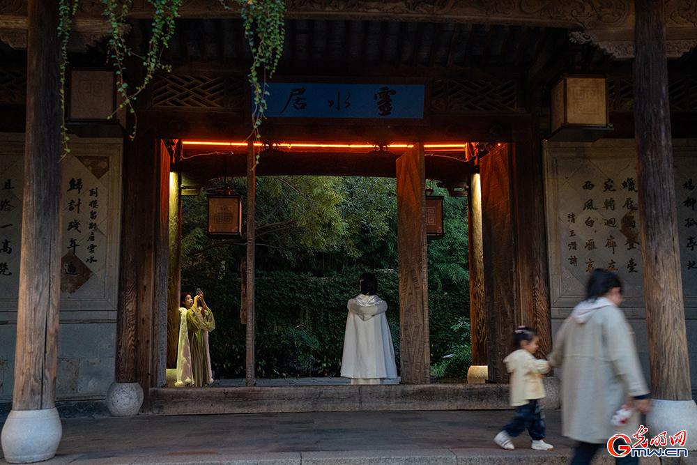 2025年11月4日,游客在乌镇西栅景区拍照留念。