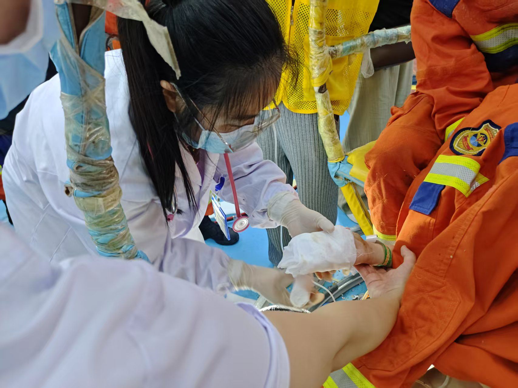 接到报警电话后,洞口县消防救援大队迅速响应,5分钟后,消防救援力量与医护人员同时抵达现场。一个小女孩无助地趴在转转椅里,小手卡在底部转盘缝隙中,指尖已渗出鲜血。