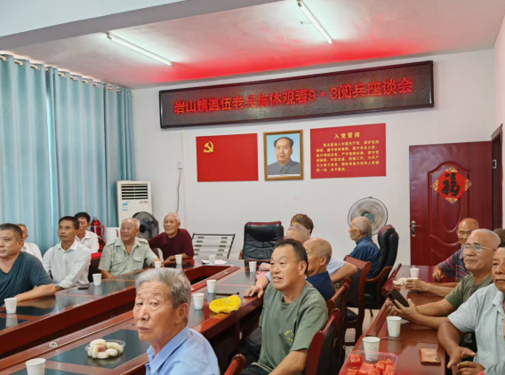 岩山镇退役军人服务站组织退伍老兵集体观看阅兵座谈会
