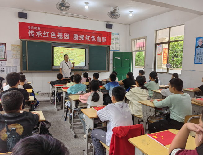 在长塘瑶族乡九年一贯制学校的教室里,尹显政以饱满的热情和真挚的情感,向在场的小学生们讲述了自己的参战经历。他回忆起当年在战场上与战友们并肩作战、不畏强敌、英勇杀敌的激烈场景,以及那些为了保卫祖国领土完整和人民幸福而英勇牺牲的战友们,言语间充满了对祖国的无限忠诚和热爱。