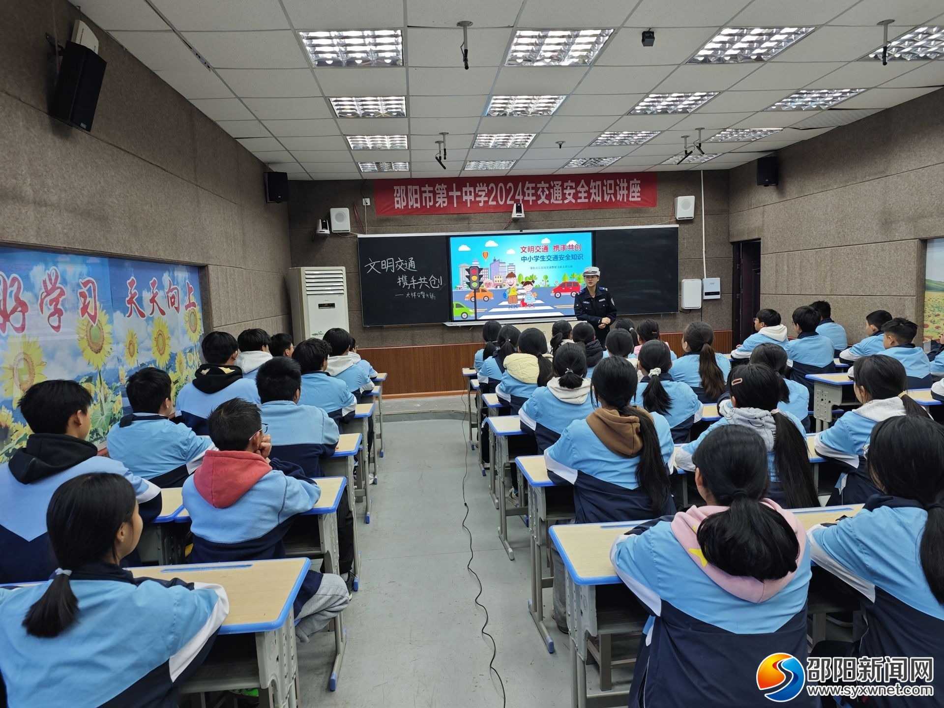 邵阳新闻网12月11日讯(通讯员 龙阳清 黄陆鸿)12月10日,大祥交警走进邵阳市第十中学开展“文明交通·携手共创”暨“知危险 会避险”冬季交通安全宣传活动,增强中学生道路交通安全意识和自我防护能力。