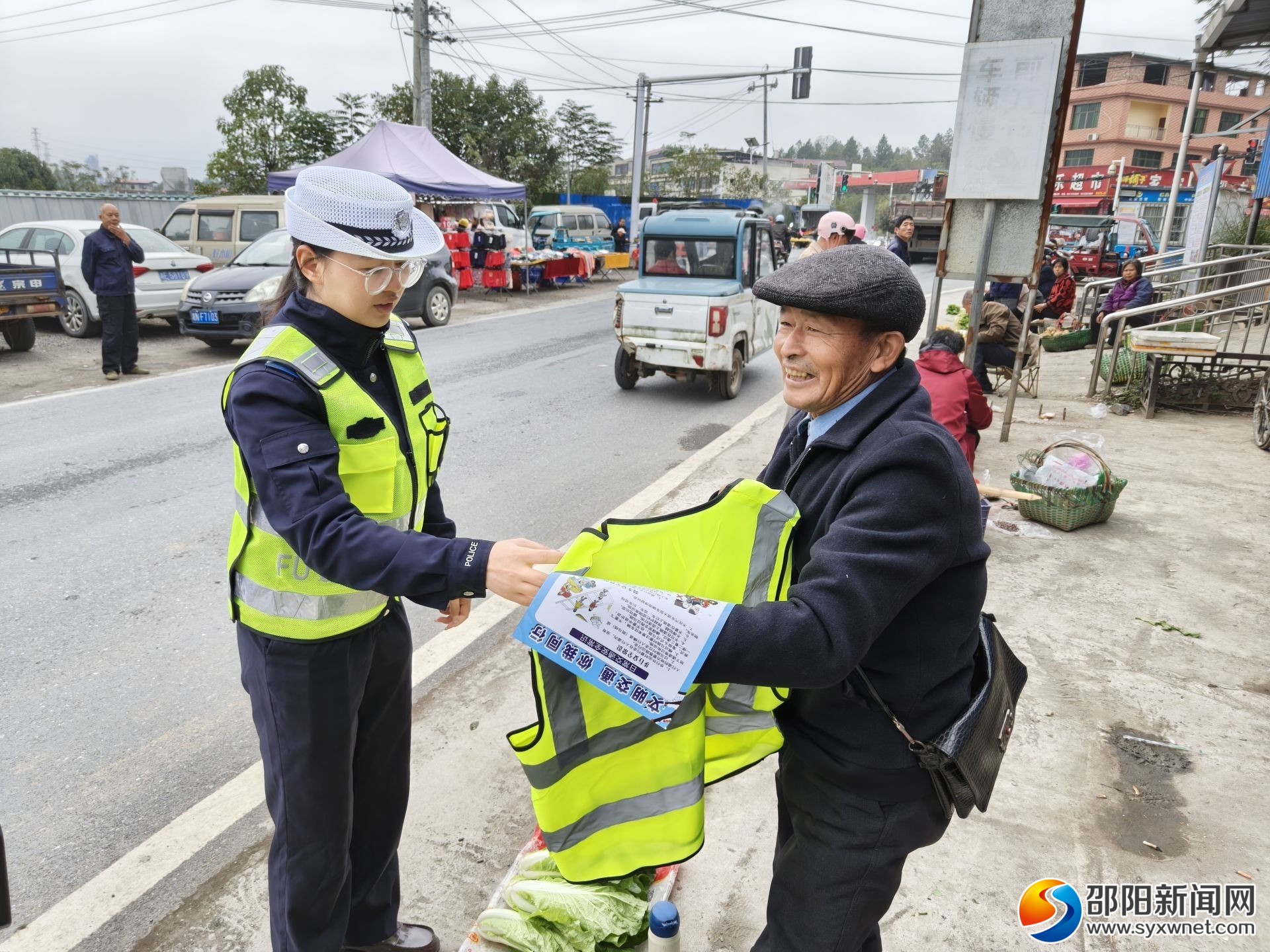 此次宣传还将目光聚焦于交通安全弱势群体——农贸市场内常年早出晚归的老年摊主。考虑到他们出行时天色较暗、行动相对缓慢的特点,警员们贴心发放反光背心,并指导正确穿着,切实增强他们早晚出行时的可视性与安全性。