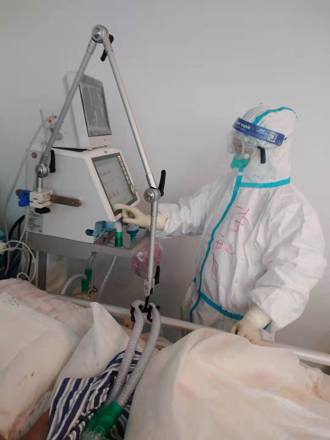 刚来病房时,我感触颇深,因为第一次穿防护装备,没有经验,防护目镜起雾,感觉要摸瞎,好在能看到大的物品,另一位同事也帮点忙,让我感觉轻松了很多,刚开始,同事可能对ICU病人管理流程不是很熟,我耐心地给她讲解。给病人做口腔护理和尿道护理时,发现物品欠缺,比如换药包,口腔包等,我们便想办法用其他物品代替,就这样慢慢的她熟练起来,两人合作愉快。