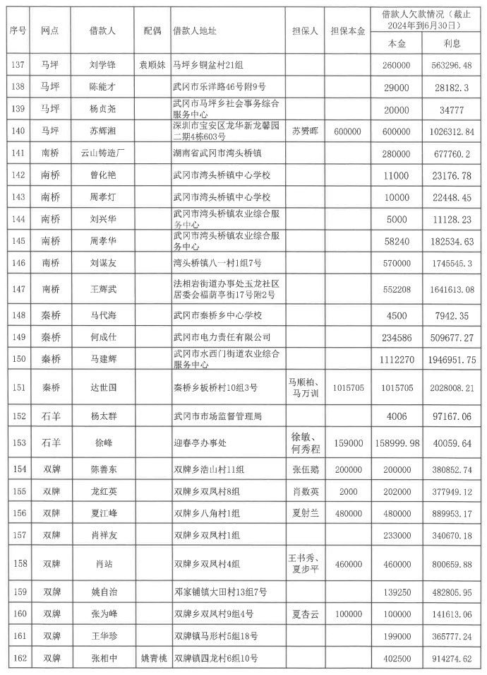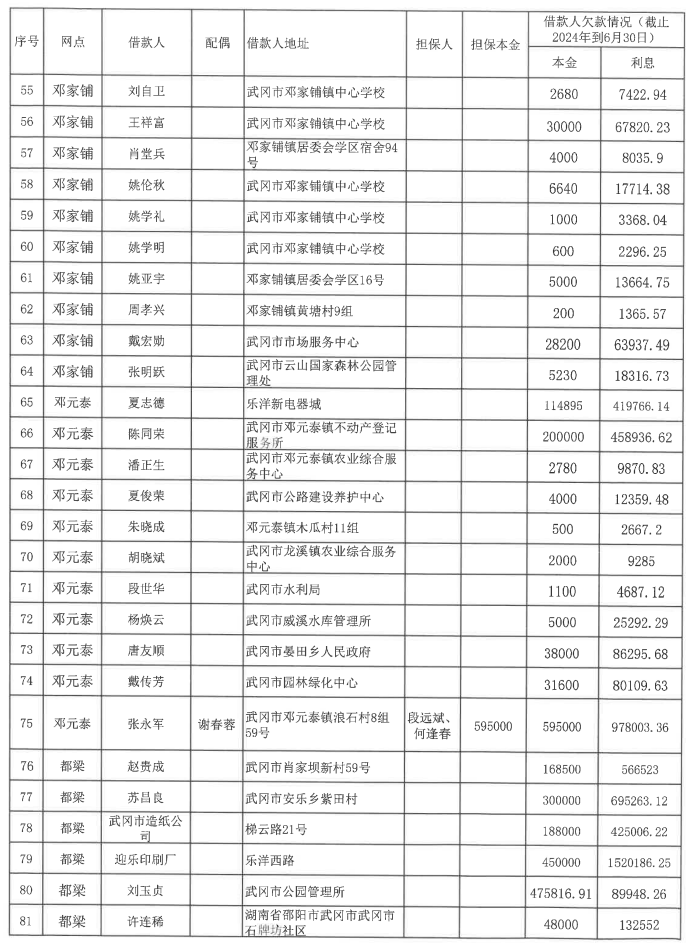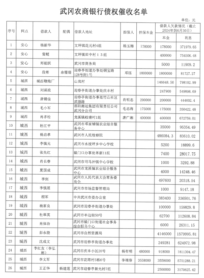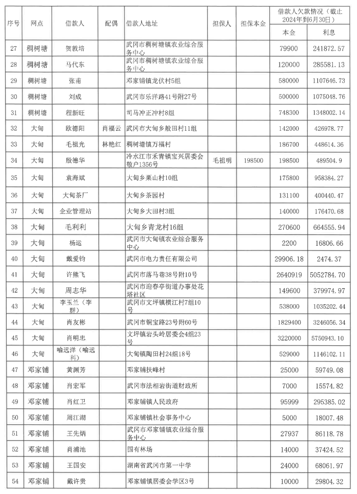 一、本公告所示债务人应于2024年8月28日起向武冈农商银行履行所签借款合同项下的全部义务,公告所示担保人应同时履行所签保证合同或抵(质)押合同项下的全部义务: