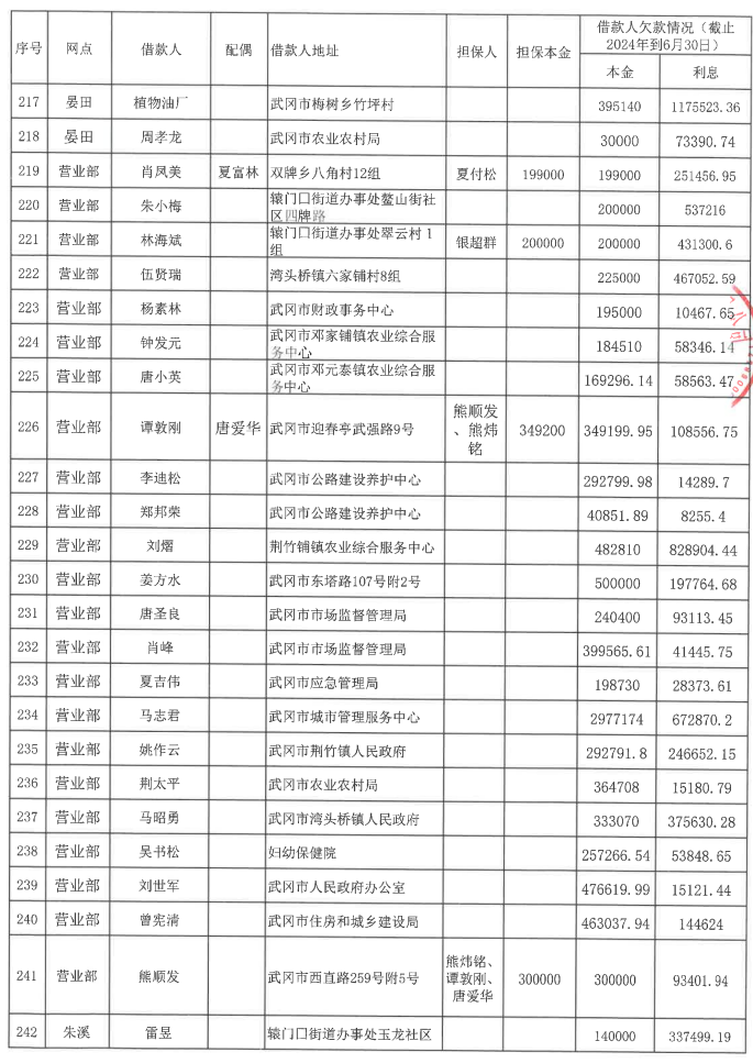 二、本公告所示债务人如在2024年8月28日前不能还款或商谈还款事项,武冈农商银行将采取相应的法律措施维护合法权益;