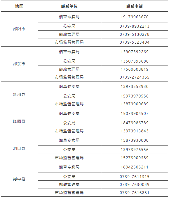 为进一步打击各类涉烟违法犯罪活动,切实维护邵阳烟草市场秩序、保障消费者权益、保护未成年人免受烟侵害和营造更好的烟草市场营商环境,现面向社会征集涉烟违法犯罪线索,现通告如下: