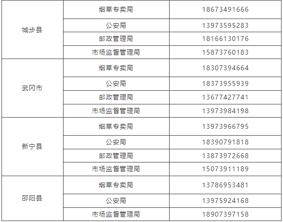 大家可以通过拨打12313进行举报,也可以通过拨打邵阳市各县(市、区)的举报电话或专卖执法人员电话进行举报。我们将对举报人的信息严格保密。举报电话: