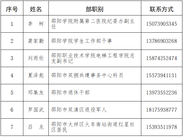 一、邵阳市本级廉洁征兵监督员