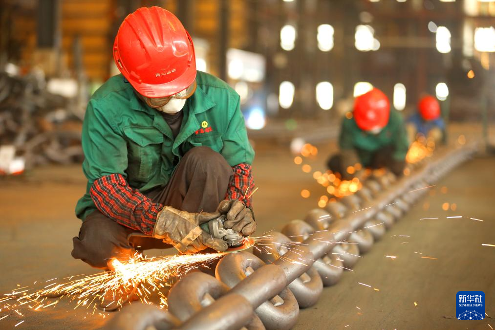 8月25日,青岛锚链股份有限公司工人在生产出口到海外市场的锚链产品。 连日来,在位于山东省青岛市即墨区灵山街道的即墨区锚链产业园生产车间,工人加班加点赶制出口到海外市场的“订单锚链”产品,满足客户需求。 今年以来,即墨区锚链生产企业加快科技创新步伐,提升自主品牌竞争力,积极拓展海外市场,迎来产销两旺的良好态势。目前,企业生产的船用锚链、海洋工程系泊链及附件产品出口到欧美、日韩、东南亚等30多个国家和地区。 新华社发(梁孝鹏摄)