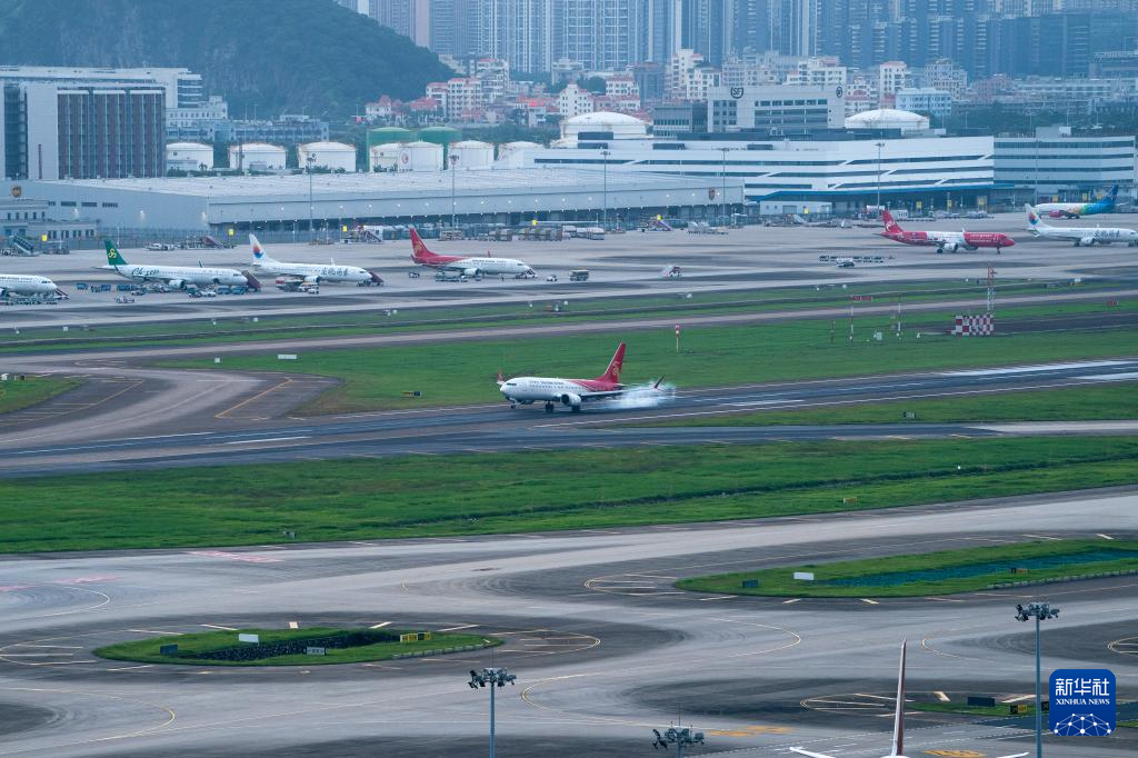 8月26日,深圳航空的飞机在深圳机场三跑道进行验证飞行。 8月26日6时20分,一架深航波音飞机在完成一系列验证科目后,稳稳落地,标志着深圳机场三跑道真机试飞工作圆满完成,为后续项目行业验收以及年内投用奠定了基础。 新华社发(董思文 摄)