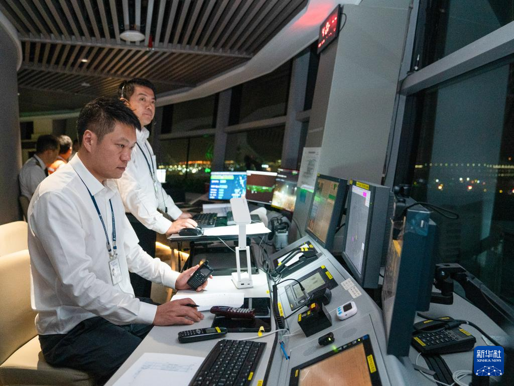 8月26日,深圳空管站塔台管制员指挥试飞飞机进行验证飞行。 8月26日6时20分,一架深航波音飞机在完成一系列验证科目后,稳稳落地,标志着深圳机场三跑道真机试飞工作圆满完成,为后续项目行业验收以及年内投用奠定了基础。 新华社发(董思文 摄)