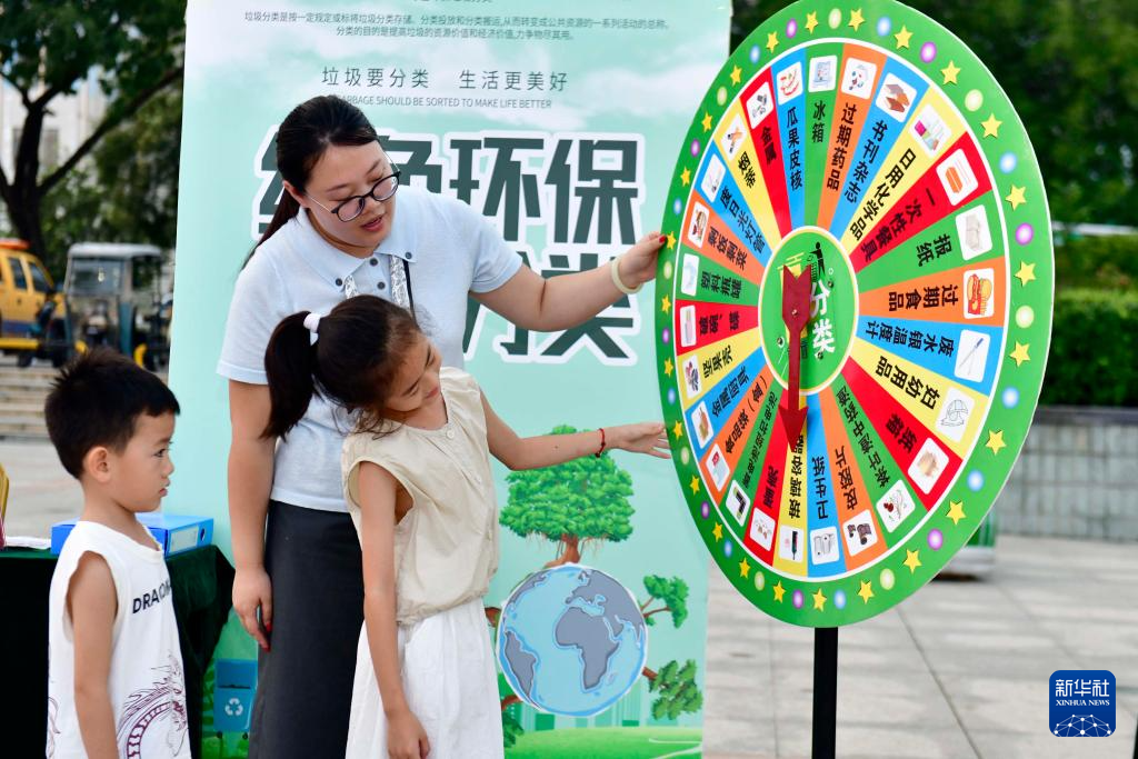 8月25日,在山东省滨州市惠民县孙武广场,县生态环境局的工作人员通过转盘游戏让小朋友了解垃圾分类知识。 近年来,山东省滨州市积极推动政务公开向基层延伸,结合文化汇演、体育赛事、惠民集市等场景,多部门协同联动开展惠民政策宣讲进社区、进广场、进乡村,构建“滨州政好 众所周知”的政务公开模式,让惠民政策更好地惠及群众。 新华社记者 郭绪雷 摄