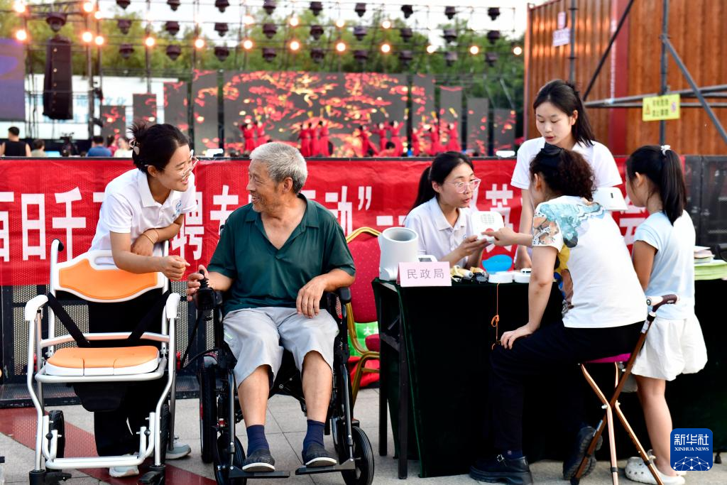 8月25日,在山东省滨州市惠民县孙武广场,民政局的工作人员向市民介绍辅助器具申领相关惠民政策。 近年来,山东省滨州市积极推动政务公开向基层延伸,结合文化汇演、体育赛事、惠民集市等场景,多部门协同联动开展惠民政策宣讲进社区、进广场、进乡村,构建“滨州政好 众所周知”的政务公开模式,让惠民政策更好地惠及群众。 新华社记者 郭绪雷 摄