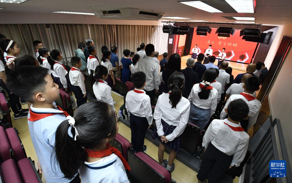 9月4日,北京市东城区黑芝麻胡同小学学生和家长代表在爱国主义教育思政课上合唱革命歌曲。 9月4日,北京市东城区黑芝麻胡同小学开展以“峥嵘岁月八十载,红色血脉永传承”为主题的新学期爱国主义教育思政课。 新华社记者 李欣 摄