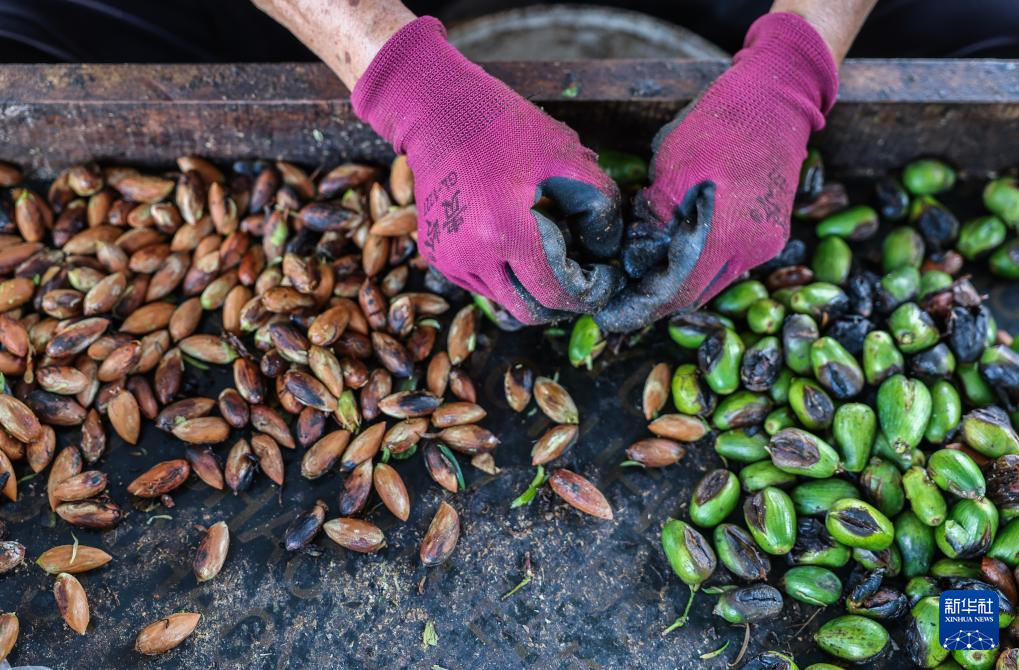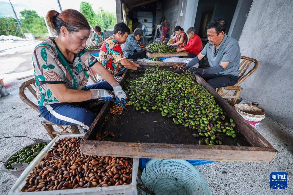 9月18日,在诸暨市赵家镇明乐果业专业合作社,当地农户在进行香榧青果剥壳。 秋意渐浓,浙江诸暨市赵家镇一年一度的香榧采摘季如期而至。赵家镇位于浙江省诸暨市东北部,是著名的香榧产区,香榧种植面积约5万亩,全镇三分之一的人口从事与香榧相关产业。 新华社记者 徐昱 摄