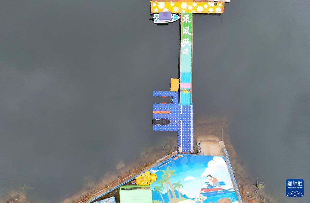 这是10月10日拍摄的青岛市南墅镇青山绣湖旅游度假区游艇码头(无人机照片)。 近年来,山东青岛市南墅镇通过盘活闲置土地资源,改造废旧校舍和废弃矿坑,打造胶东大院、青山绣湖等农文旅融合项目,带动周边村民就业增收。 新华社记者 丁洪法 摄