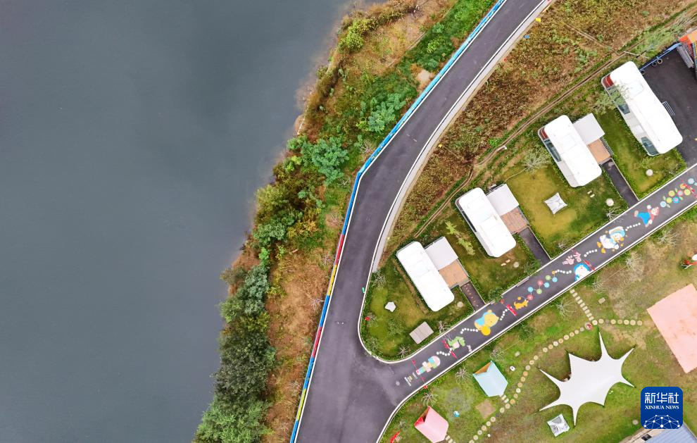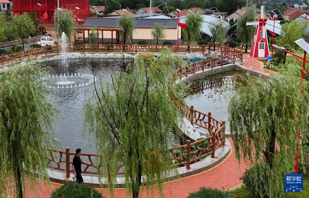 这是10月10日拍摄的青岛市南墅镇青山绣湖旅游度假区(无人机照片)。 近年来,山东青岛市南墅镇通过盘活闲置土地资源,改造废旧校舍和废弃矿坑,打造胶东大院、青山绣湖等农文旅融合项目,带动周边村民就业增收。 新华社记者 丁洪法 摄