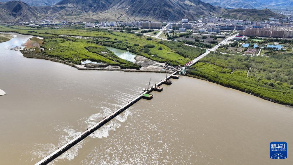 建设中的萨热路跨江大桥(无人机照片,9月26日摄)。 10月13日,横跨雅鲁藏布江山南段的西藏山南萨热路跨江大桥最后一片箱梁精准落位,该桥88片箱梁的预制与架设任务全部完成,为后续主桥段挂篮施工奠定了坚实基础。萨热路跨江大桥全长1457米,建成后将成为连接雅江两岸的重要交通枢纽。 新华社记者 晋美多吉 摄