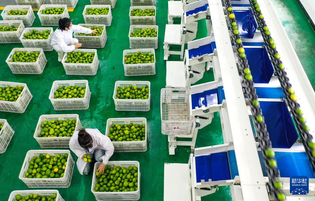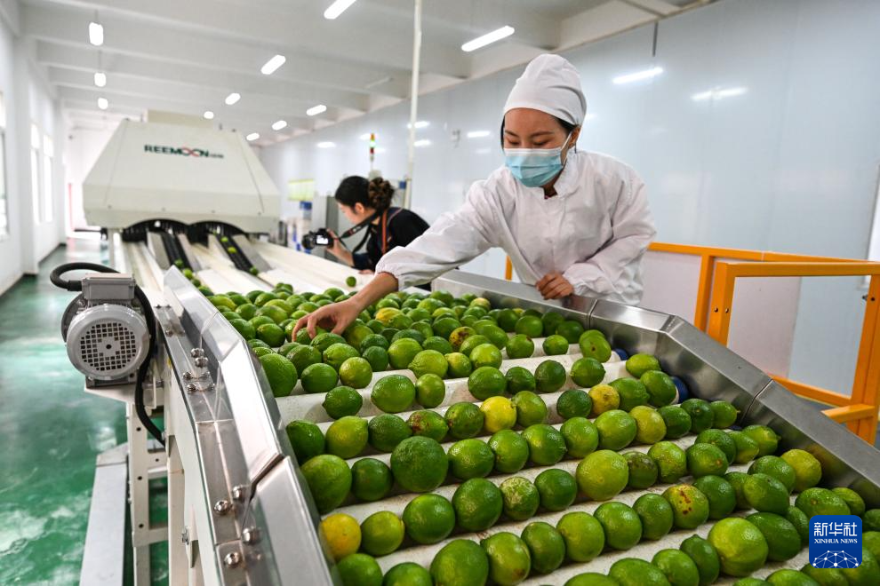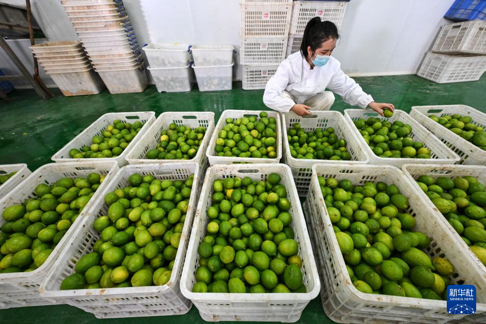 10月16日,工人在望谟县蔗香镇青柠檬现代产业园的生产车间分拣柠檬。 2017年,贵州省黔西南布依族苗族自治州望谟县蔗香镇通过“东西部协作”,引进农业科技企业,依托当地良好的地理气候资源优势,利用荒山坡地,大力发展青柠檬种植4600亩,助力农业提质增效、农户“家门口”增收。同时,当地以精品青柠檬水果种植为载体,建立以培育、种植、加工、销售为一体的产业模式,把小柠檬做成助力乡村振兴的地方大产业。 新华社记者 杨文斌 摄