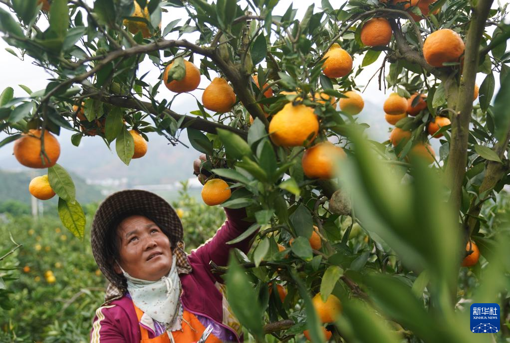 10月27日,在云南省华宁县华溪镇柑橘种植基地,村民采摘柑橘。 近年来,云南省华宁县因地制宜发展柑橘产业,建设柑橘产业园,推动产业绿色化、规模化、品牌化发展。产业园采取“公司+集体经济组织(专业合作社)+农户”的发展模式,带动农户增收。 新华社发(梁志强 摄)