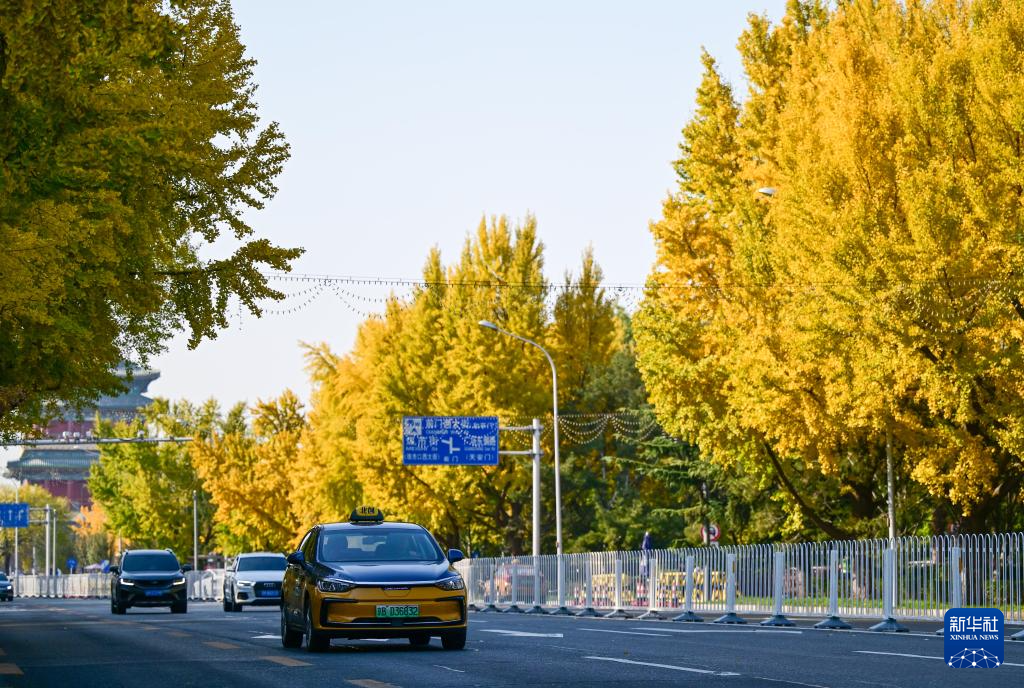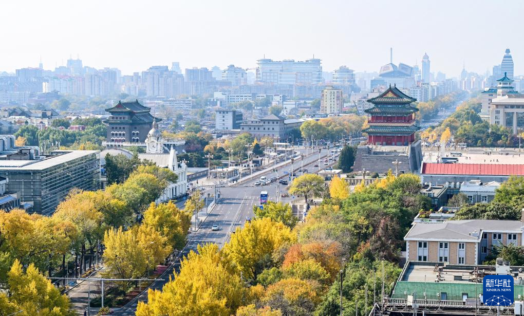 11月3日拍摄的北京前门东大街秋色。 正值深秋,北京街头秋色斑斓,景色怡人。 新华社记者 陈晔华 摄