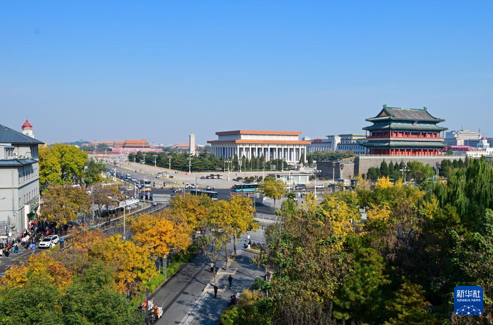 11月3日拍摄的北京天安门广场建筑群及周边的秋色。 正值深秋,北京街头秋色斑斓,景色怡人。 新华社记者 陈晔华 摄
