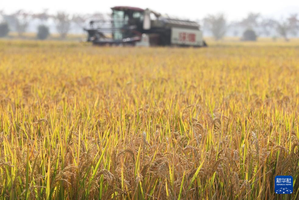 11月2日,在浙江省湖州市德清县乾元镇,农机手驾驶收割机收获晚稻。 深秋时节,各地农民抢抓农时加紧收获,处处是喜人的秋日好“丰”景。 新华社发(倪立芳摄)