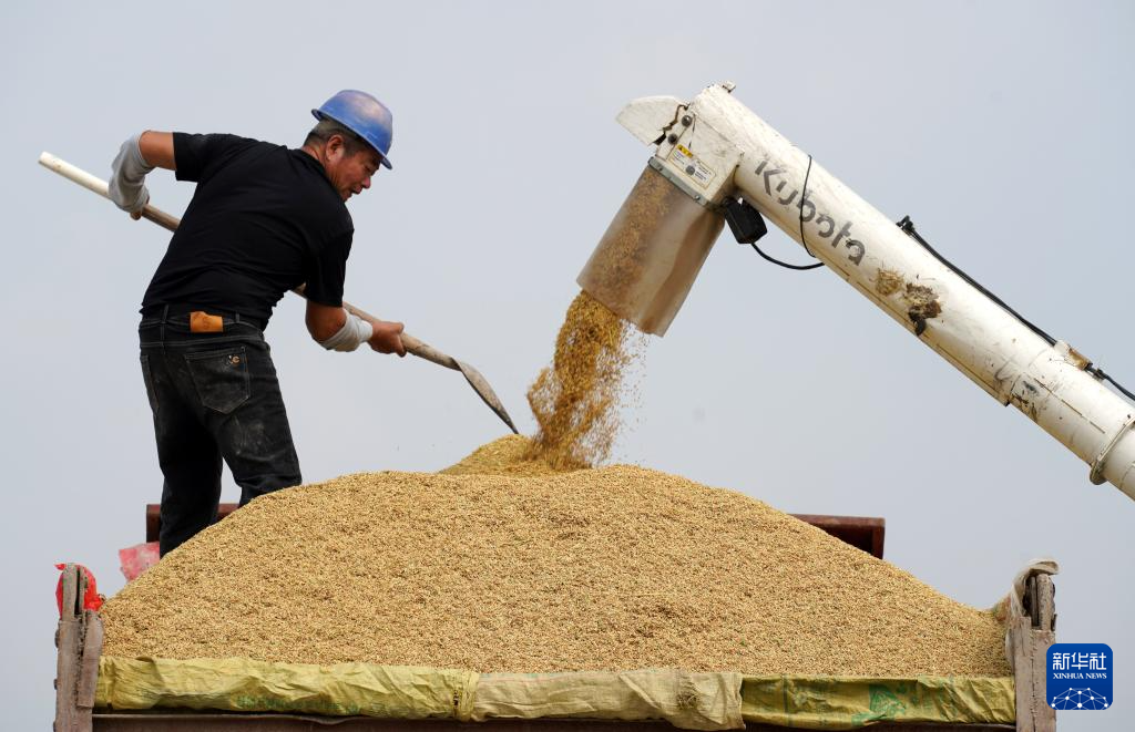 11月2日,农民在浙江省乐清市城东街道农田里将收割的稻谷装车。 深秋时节,各地农民抢抓农时加紧收获,处处是喜人的秋日好“丰”景。 新华社发(蔡宽元摄)