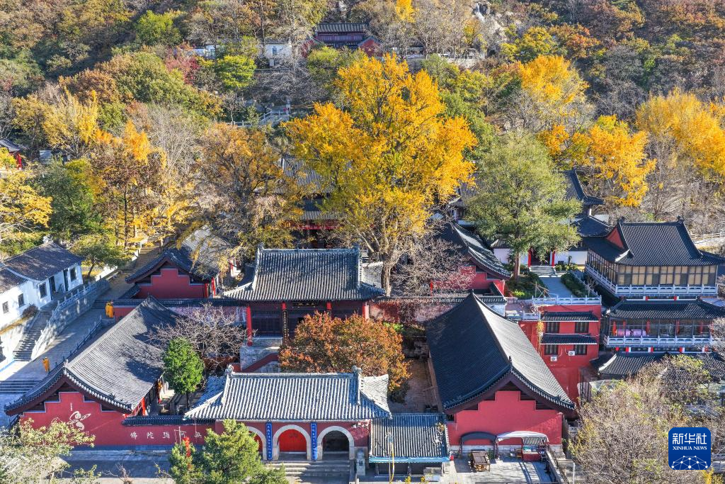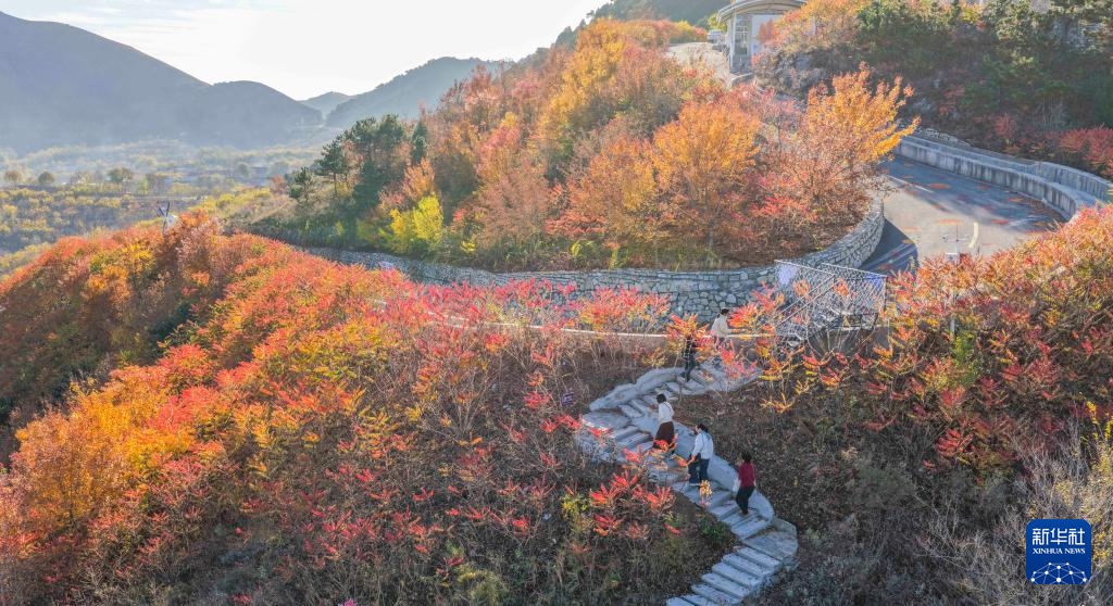11月9日,游客在河北省遵化市娘娘庄镇南山常乐谷景区游玩(无人机照片)。