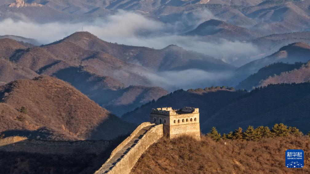 这是11月9日清晨拍摄的河北省承德市滦平县金山岭长城(无人机照片)。