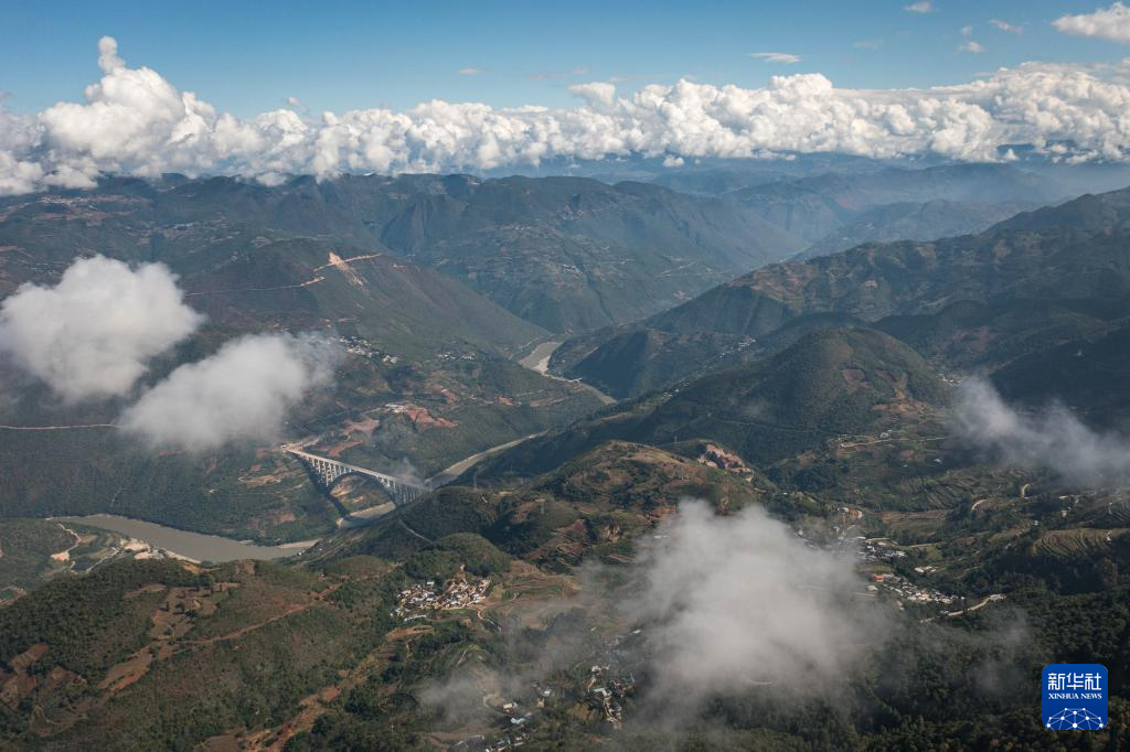 这是11月20日在云南省保山市龙陵县松山战役旧址拍摄的松山峰峦和怒江峡谷(无人机照片)。