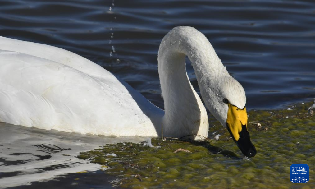 11月20日,天鹅在密云水库流域的清水河中觅食。 近期,北京密云水库迁徙候鸟数量持续攀升,上万只天鹅、豆雁、赤麻鸭、灰鹤等候鸟栖息在密云水库流域大小河流中。密云水库是东亚——澳大利亚候鸟迁徙线路上重要的中转站和栖息点,密云水库管理处开展了候鸟动态监测、食源补给、鸟类栖息浅滩修复、救助受伤体弱候鸟、引导文明观鸟等一系列管护措施,全方位守护候鸟迁徙“生态服务区”。 新华社记者 李欣 摄