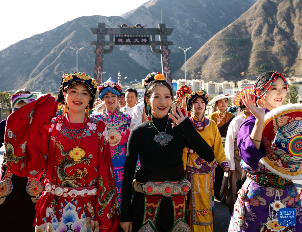 11月19日,在四川省汶川县城,身着民族服饰的妇女参加非遗大巡游活动。 11月19日,四川省汶川县举行非遗大巡游活动,开启“大美阿坝·幸福羌年”2025羌年庆祝系列活动。 新华社发(兰红光摄)